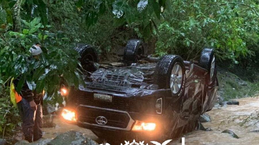 Nájera también compartió un video en el que se muestra algunos segundos de un vehículo volcado, entre las aguas del río, en el que presuntamente se habría conducido el abogado Salguero.