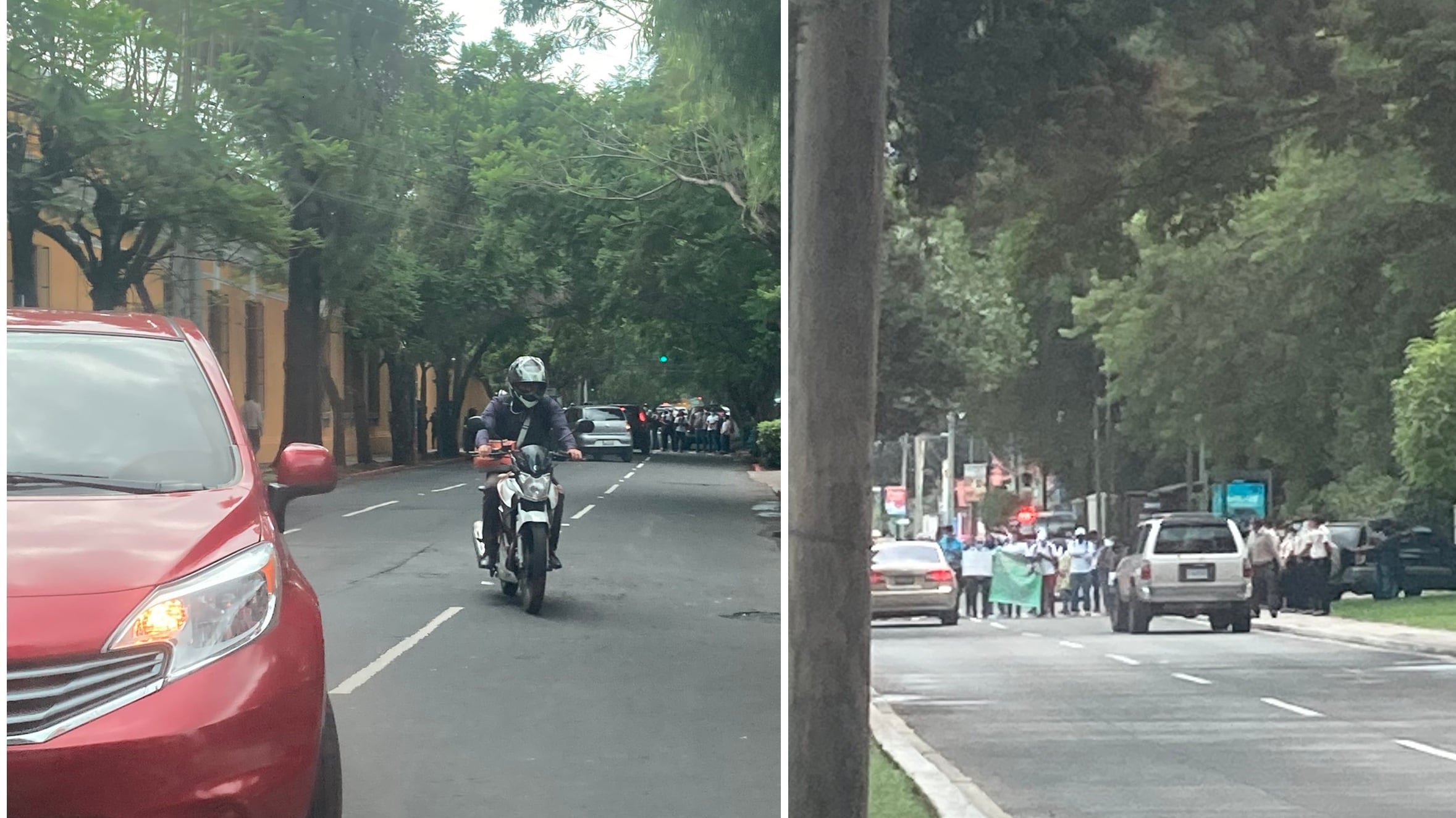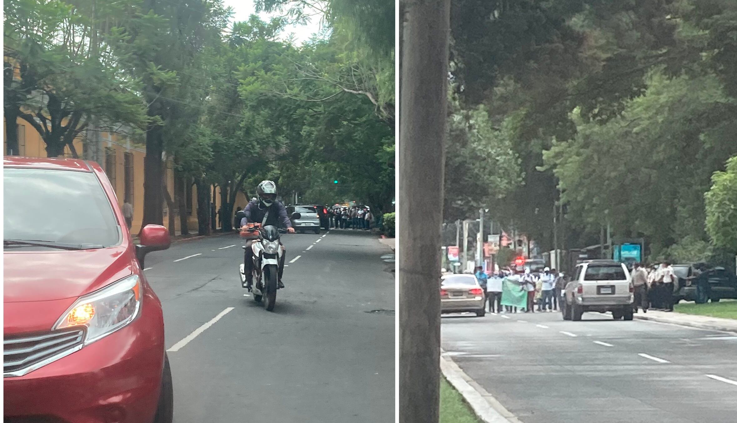 En estos momentos un grupo permanece sobre la avenida Reforma y otro a un costado del edificio, sobre la calle, lo cual ha generado complicaciones del tránsito vehicular.