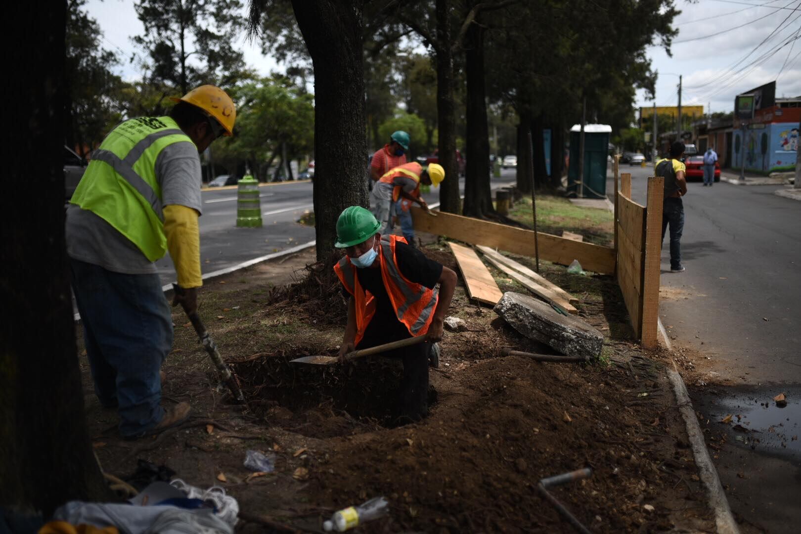 Trabajadores de la Municipalidad de Guatemala continúan con las labores para fortalecer el suelo y el colector de agua ubicado bajo la 31 avenida, entre la 10a y 11 calle, en el Periférico Sur, en la zona 7 de la capital.
