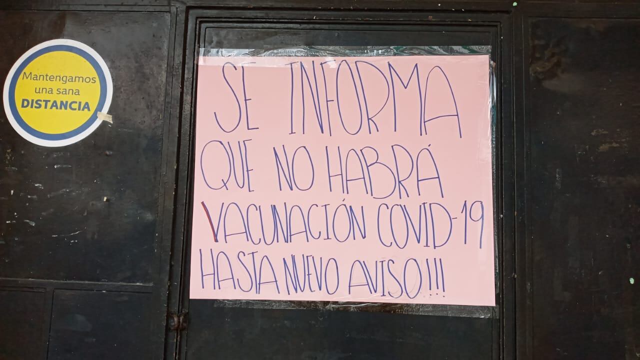 “Hasta nuevo aviso se reanudará la vacunación”, se lee en los cárteles colocados en las puertas de los tres centros.
