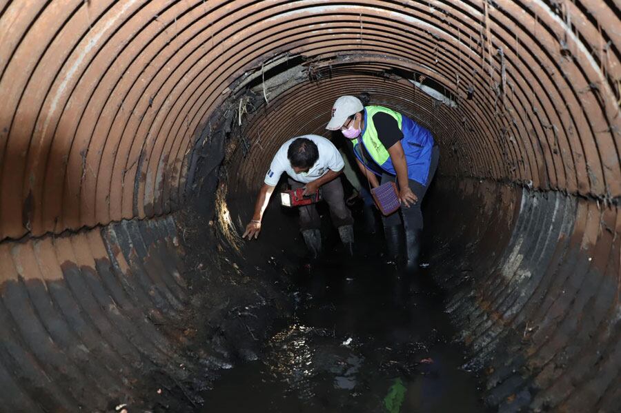 “Un gran equipo trabajando hoy domingo en el hundimiento de la Roosevelt. Quiero contarles que hay mucha raíz de árboles en el colector, que estanca el agua”, aseguró el jefe edil.