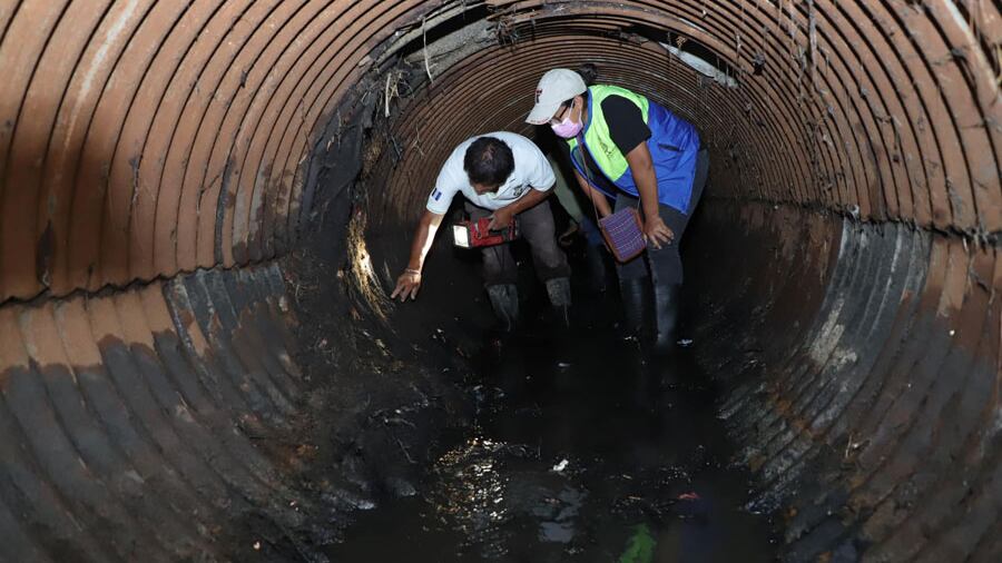 “Un gran equipo trabajando hoy domingo en el hundimiento de la Roosevelt. Quiero contarles que hay mucha raíz de árboles en el colector, que estanca el agua”, aseguró el jefe edil.