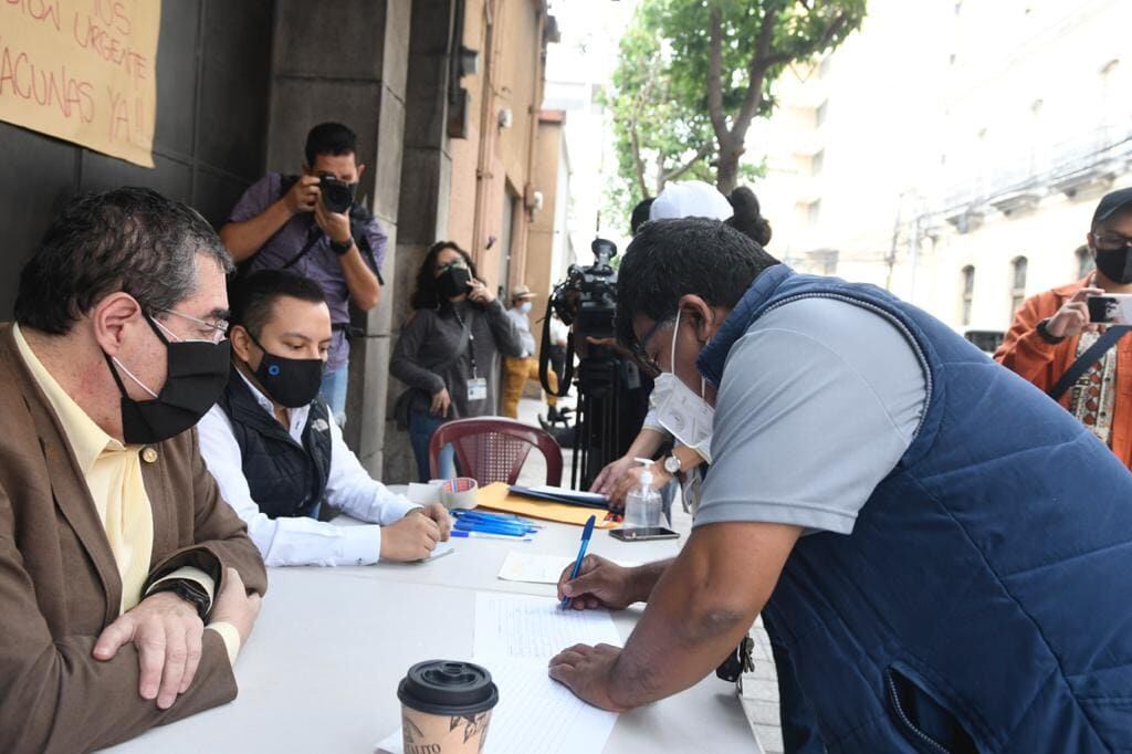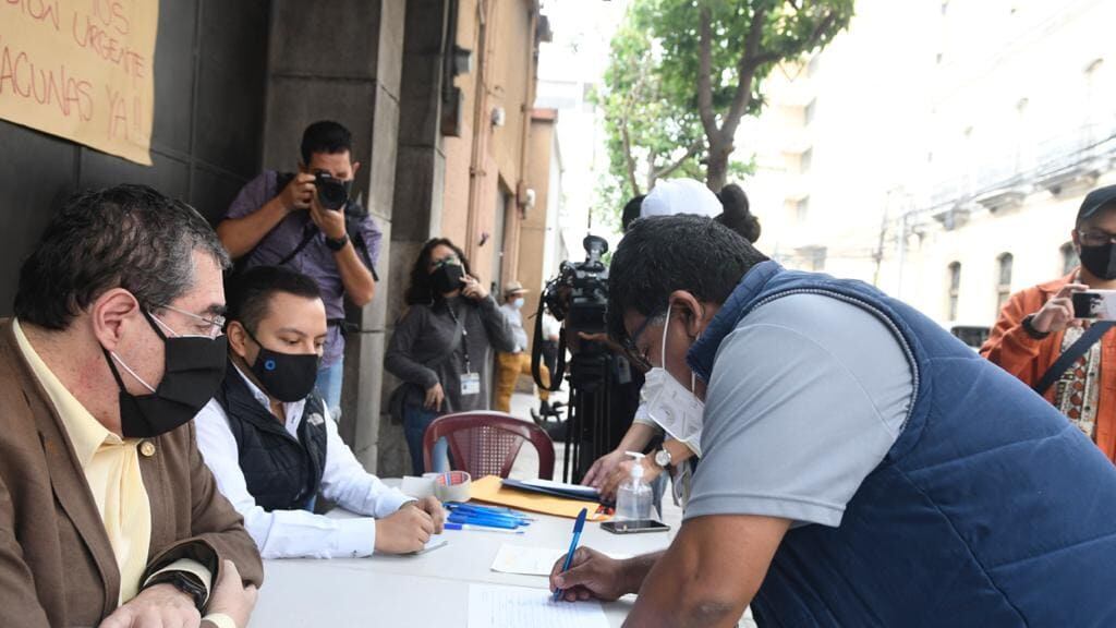 Diputados de la bancada Semilla instalaron en la zona 1 de la capital una mesa y solicitaron firmas a ciudadanos para requerir a la Comisión Permanente del Congreso de la República que se convoque a una reunión de urgencia.