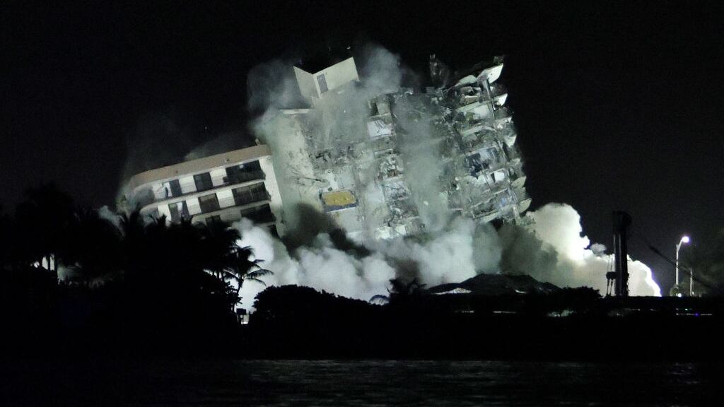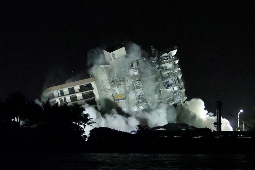 Una explosión controlada derribó este domingo por la noche la sección que había quedado en pie del edificio que colapsó en Florida el 24 de junio dejando 24 muertos y 121 desaparecidos, según imágenes de televisión.