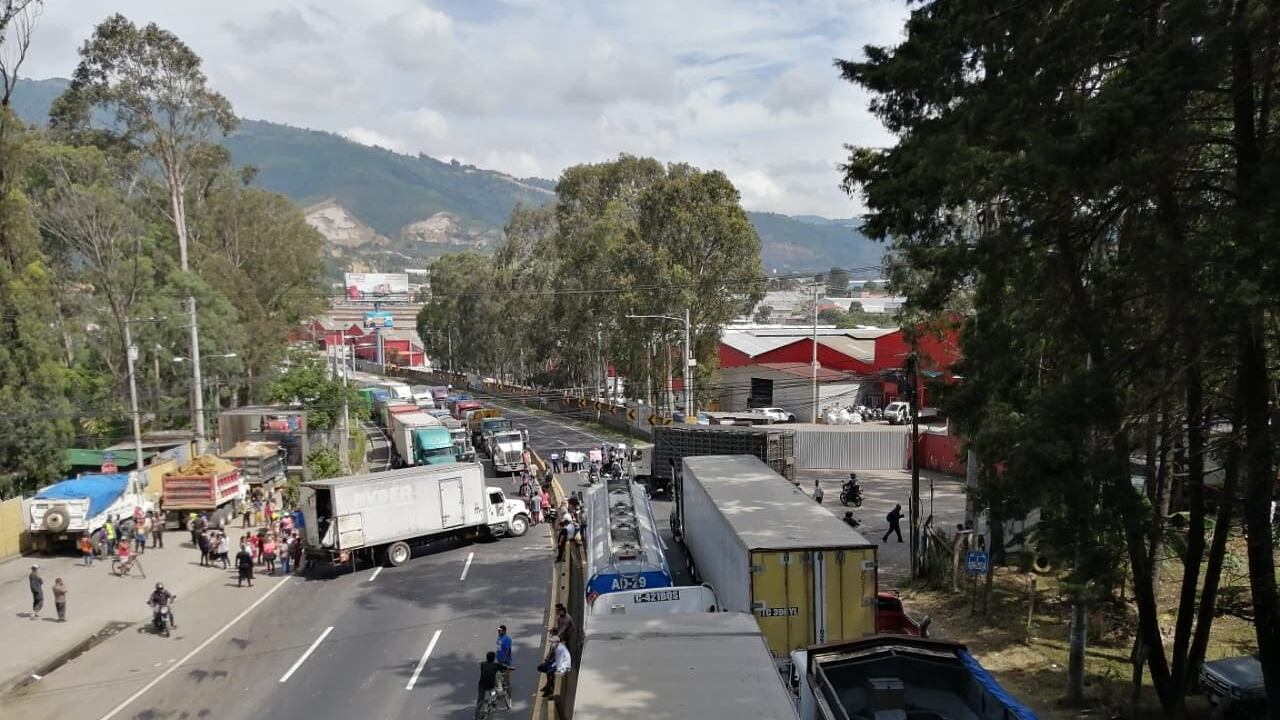Integrantes de la Gremial de Recolectores de Guatemala bloquearon el paso vehicular en el kilómetro 22 de la ruta al Pacífico, a inmediaciones de Villa Nueva. El tránsito vehicular resultó seriamente afectado.