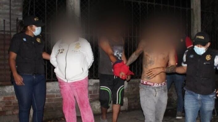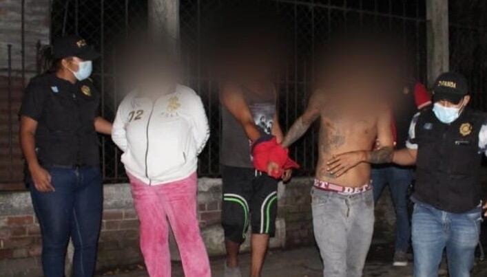 La Policía Nacional Civil informó sobre la captura de tres supuestos extorsionistas en aldea La Aurora, en Masagua, Escuintla.