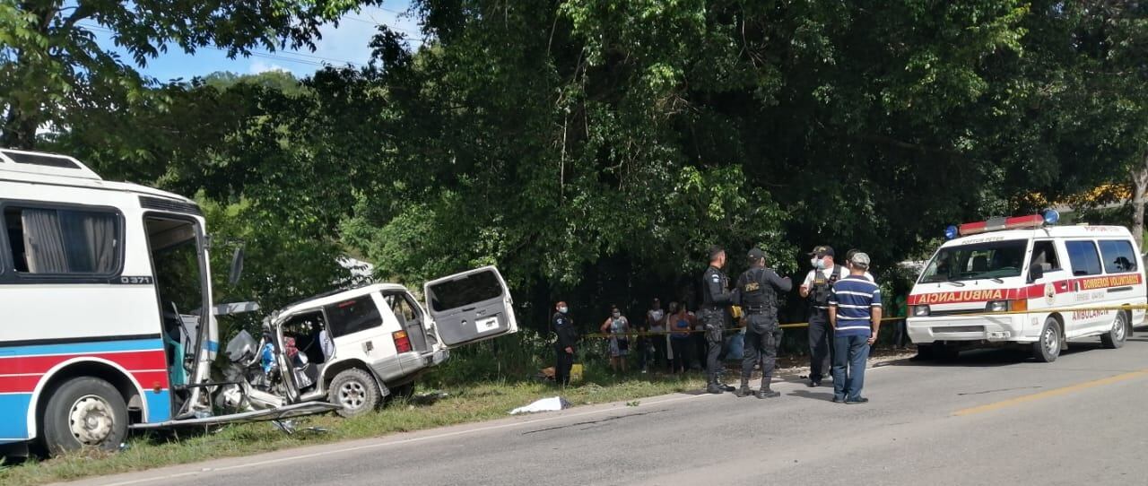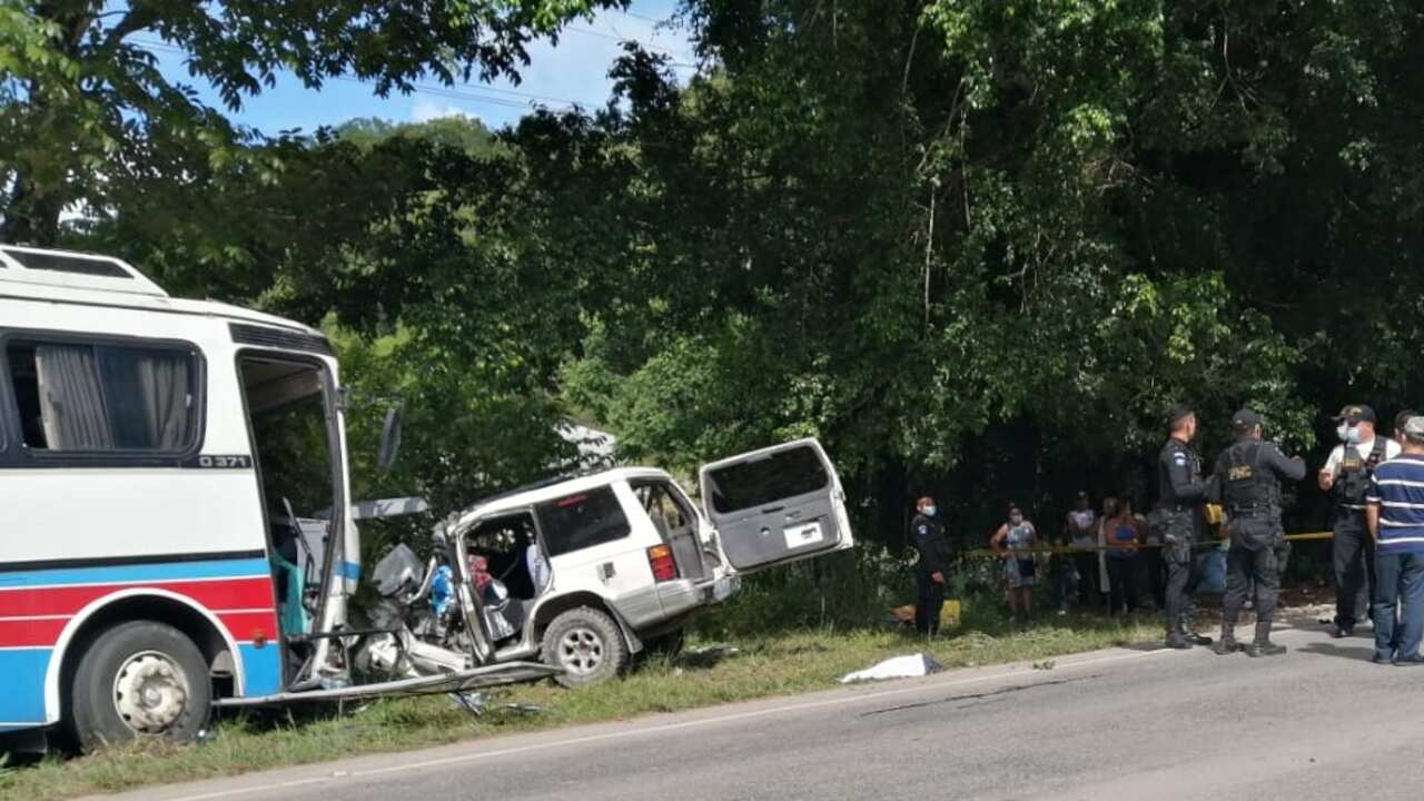 Al menos tres personas fallecieron en un accidente que involucró un bus extraurbano tipo pullman y dos vehículos livianos en jurisdiccción de la aldea Machaquilá, en Petén.