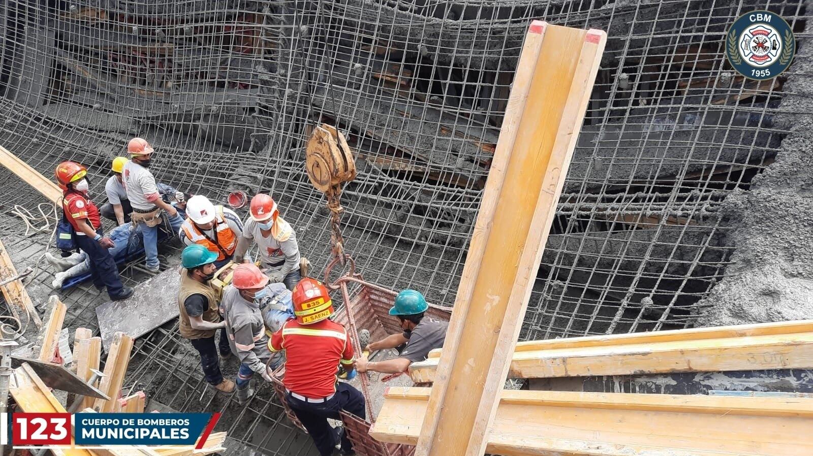 Al menos tres trabajadores de una construcción en la zona 13 de la capital, fueron rescatados por socorristas tras el colapso de una estructura de fundición.