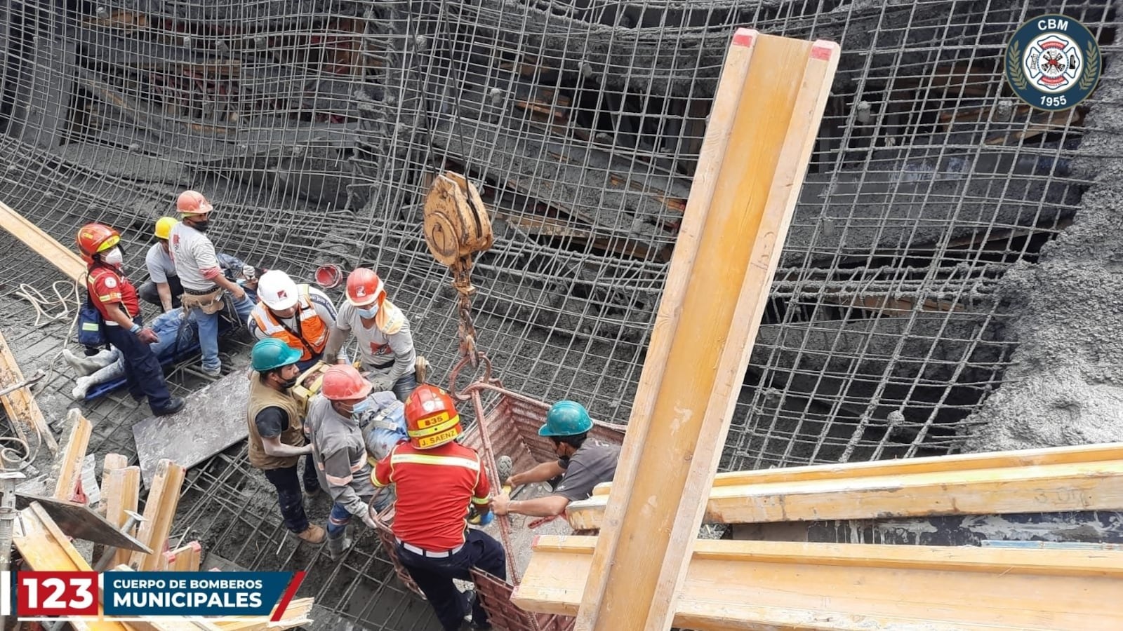 En imágenes publicada en redes sociales del cuerpo de socorro, se observa que el equipo de bomberos es numeroso y están siendo auxiliado por otro trabajadores de la obra para movilizar a los heridos.