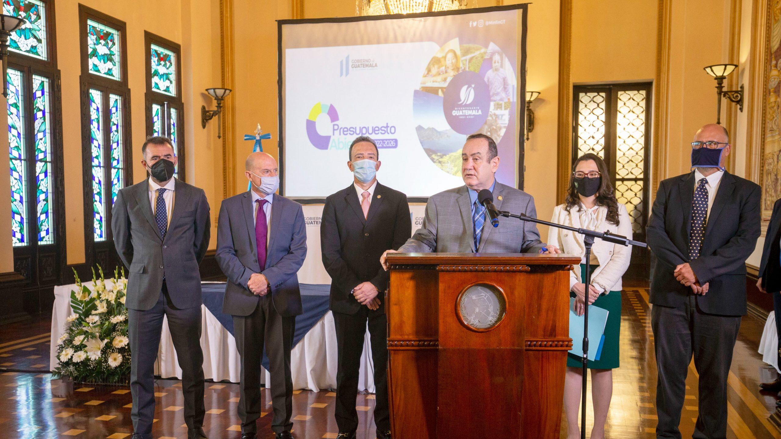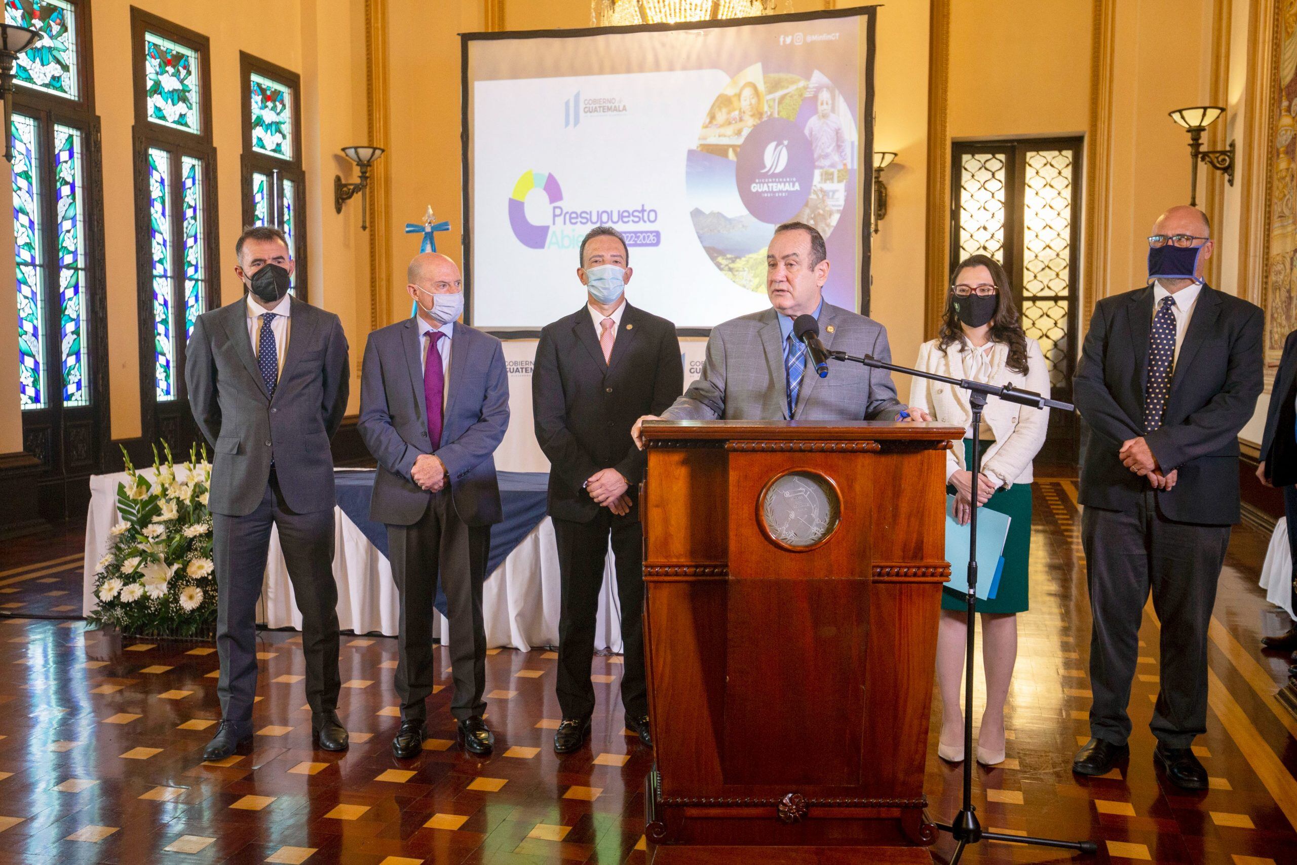 Giammattei enfatizó que el proyecto de presupuesto se basa en cuatro ejes principales, los cuales son: salud, educación, seguridad e infraestructura “estratégica”.
