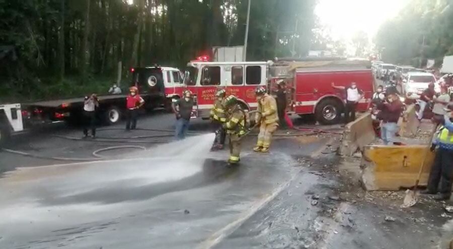 Los Bomberos Voluntarios ayudaron en la limpieza del combustible que quedó derramado y con la finalidad de que no se prendieran nuevamente las llamas.