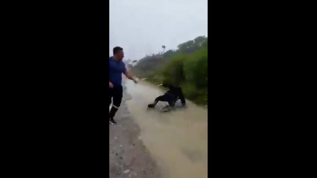 - Uno de los elementos fue empujado hacia un charco de agua.