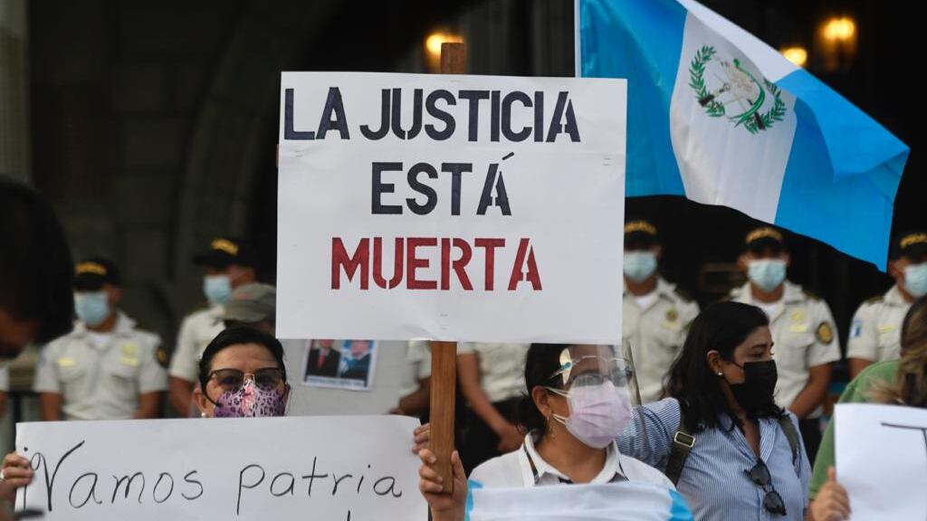 Los manifestantes que iniciaron la protesta en la sede del Ministerio Público (MP) y luego se movilizaron a la Plaza Central también pidieron la renuncia del presidente Alejandro Giammattei y de la Fiscal General, Consuelo Porras.