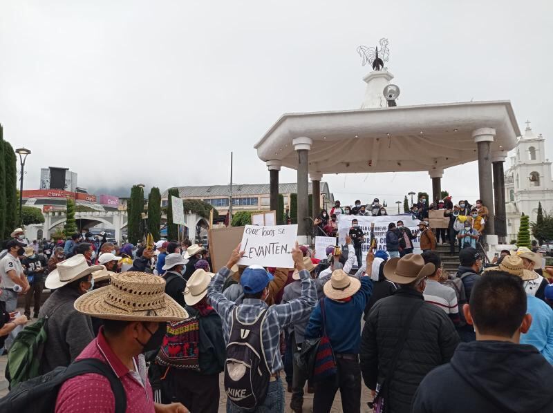 En el centro de Santa Cruz del Quiché, están reunidos integrantes de diversas organizaciones y habitantes de distintos municipios, exigiendo la renuncia del presidente Giammattei y de Consuelo Porras, fiscal general del Ministerio Público.