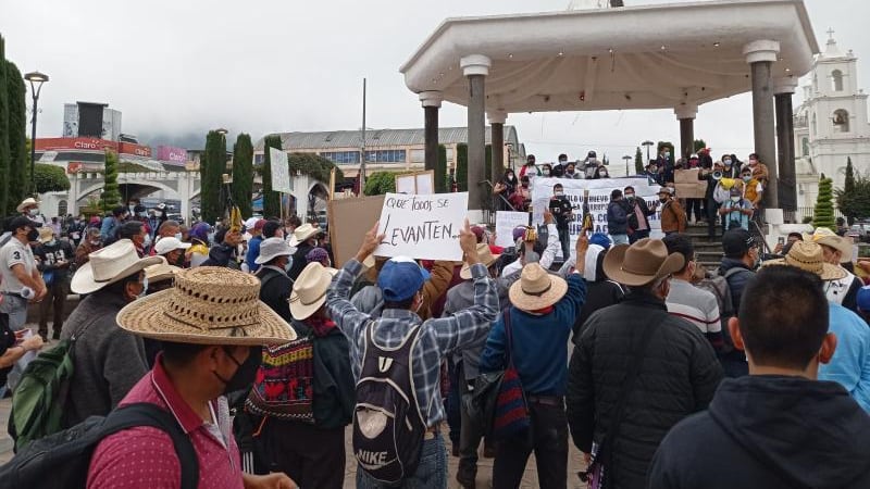 En el centro de Santa Cruz del Quiché, están reunidos integrantes de diversas organizaciones y habitantes de distintos municipios, exigiendo la renuncia del presidente Giammattei y de Consuelo Porras, fiscal general del Ministerio Público.