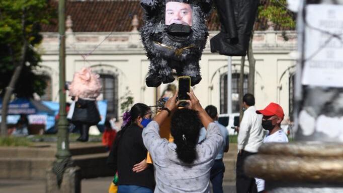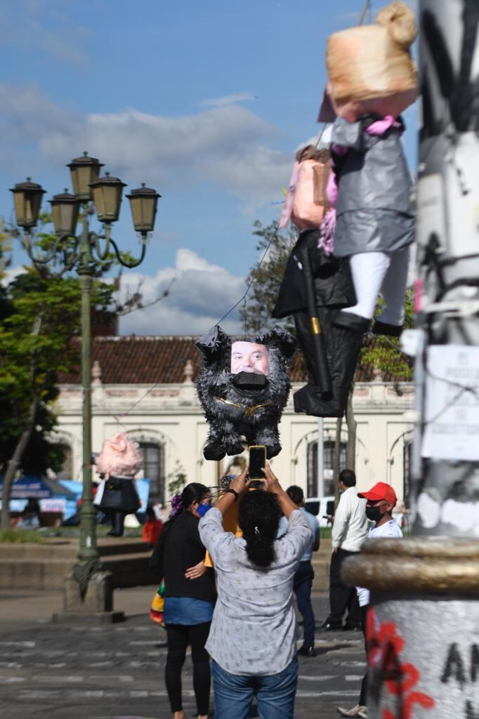 En la Plaza fueron colgadas piñatas en alusión al Presidente de Guatemala, la jefa del Ministerio Público (MP), al presidente del Congreso de la República, Allan Rodríguez, y al diputado Álvaro Arzú Escobar.
