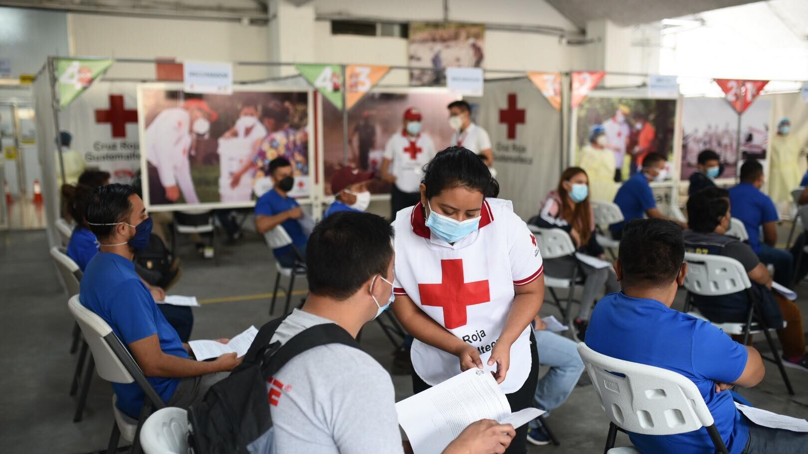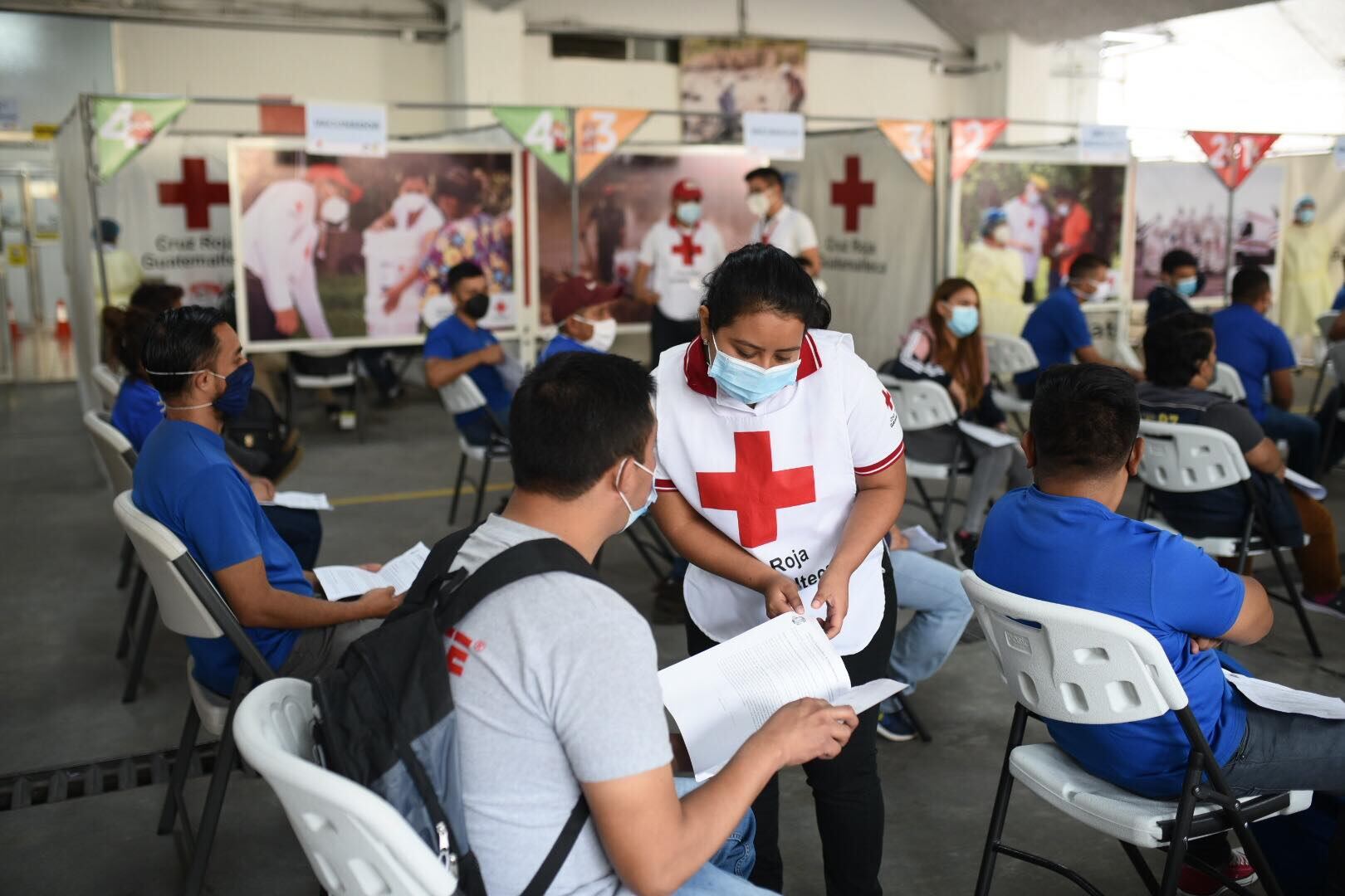 El centro de vacunación de la Cruz Roja trabaja en coordinación con el Instituto Guatemalteco de Seguridad Social (IGSS), donde se espera vacunar a 800 personas diariamente con la dosis de Moderna.