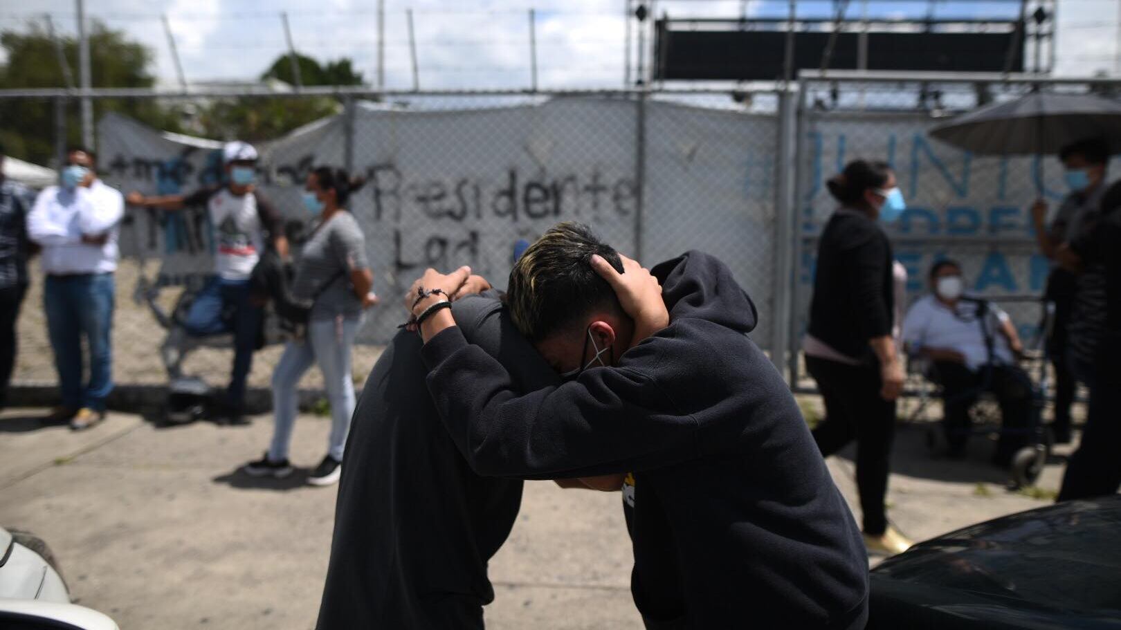 Un ambiente de dolor, impotencia y desesperanza se observa frente a las instalaciones del hospital temporal Parque de la Industria, ubicado en zona 9 capitalina.