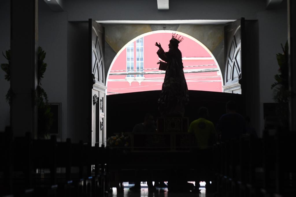 Una de la imágenes de la patrona de Guatemala fue colocada a un costado del portón de la iglesia para que los feligreses puedan observar más de cerca.