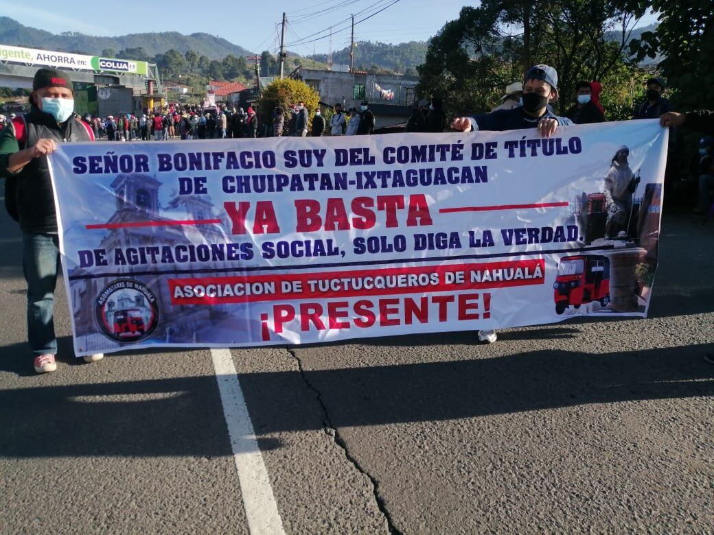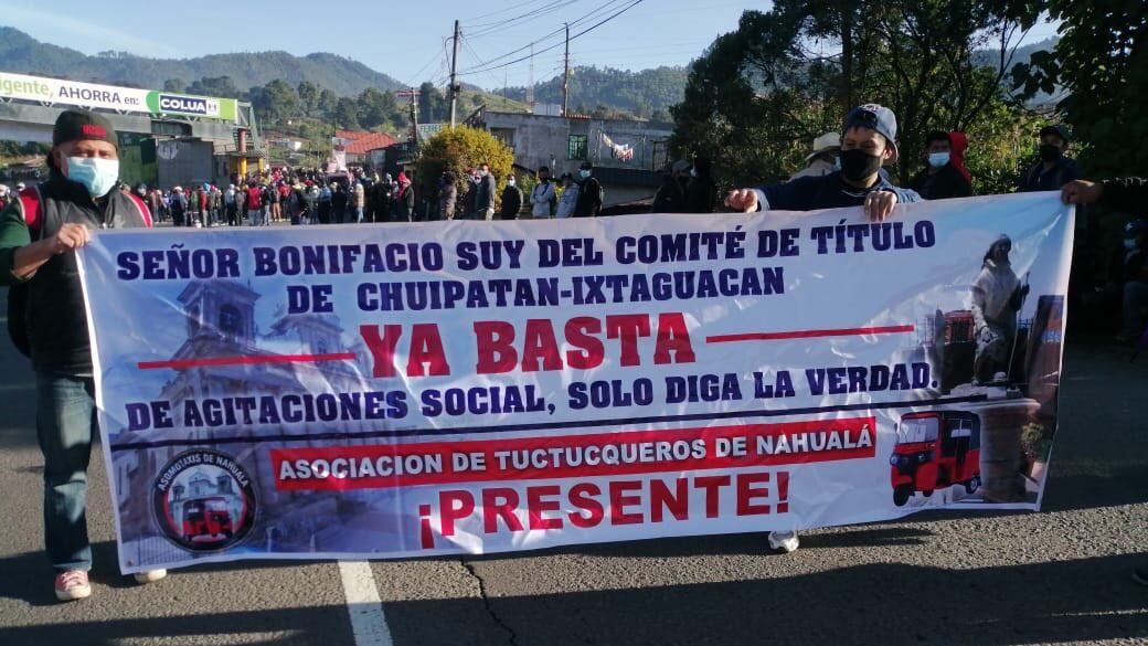 Un grupo de vecinos de Nahualá bloquearon el tránsito para exigir a las autoridades que cese el conflicto territorial con Santa Catarina Ixtlahuacán, en Sololá.