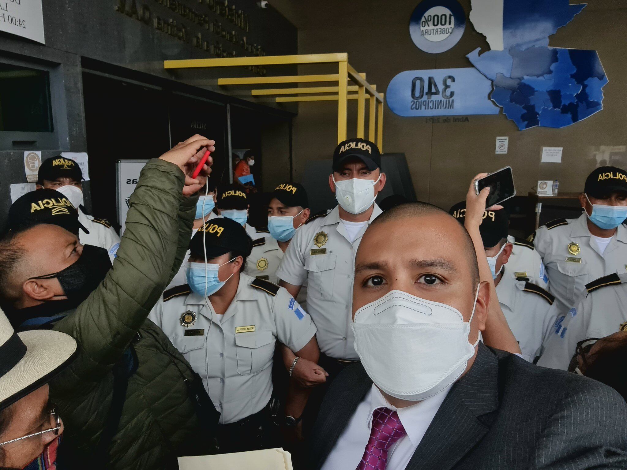 De acuerdo con el también abogado, este viernes se les dificultó presentar la denuncia debido a que el edificio del MP era acordonado por agentes de la Policía Nacional Civil quienes le impidieron el paso.
