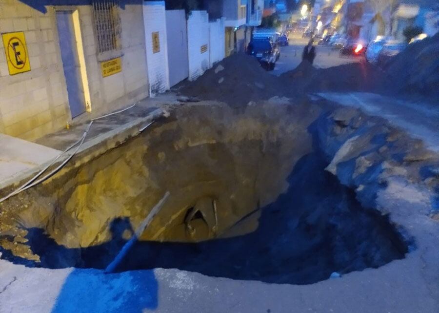 Derivado de las lluvias que se han presentado en la ciudad capital en las últimas horas, nuevamente ocurrió un socavamiento en el bulevar Pablo VI, ubicado en la zona 7 de Mixco.