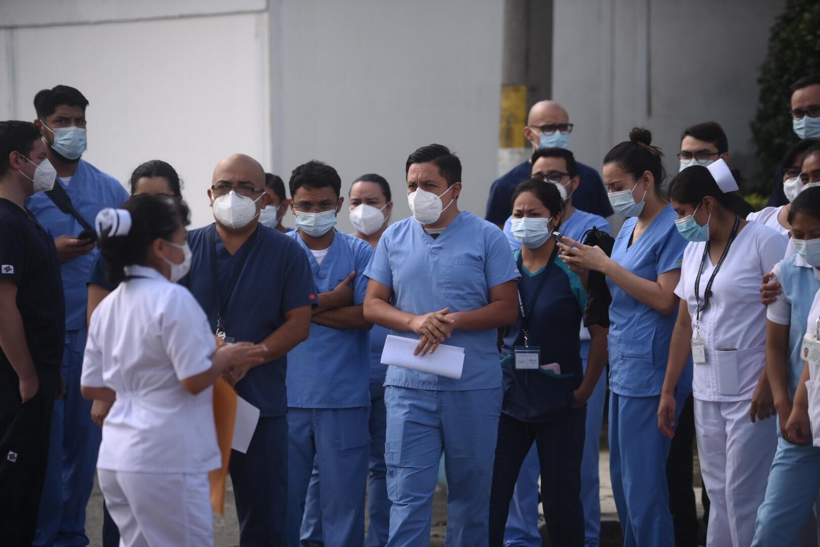 En la puerta número 8 del hospital temporal del Parque de la Industria, acuerpados unos a otros, uno de los médicos dio lectura al comunicado. Estas fueron son sus peticiones al Gobierno, al cual piden mayor respaldo: