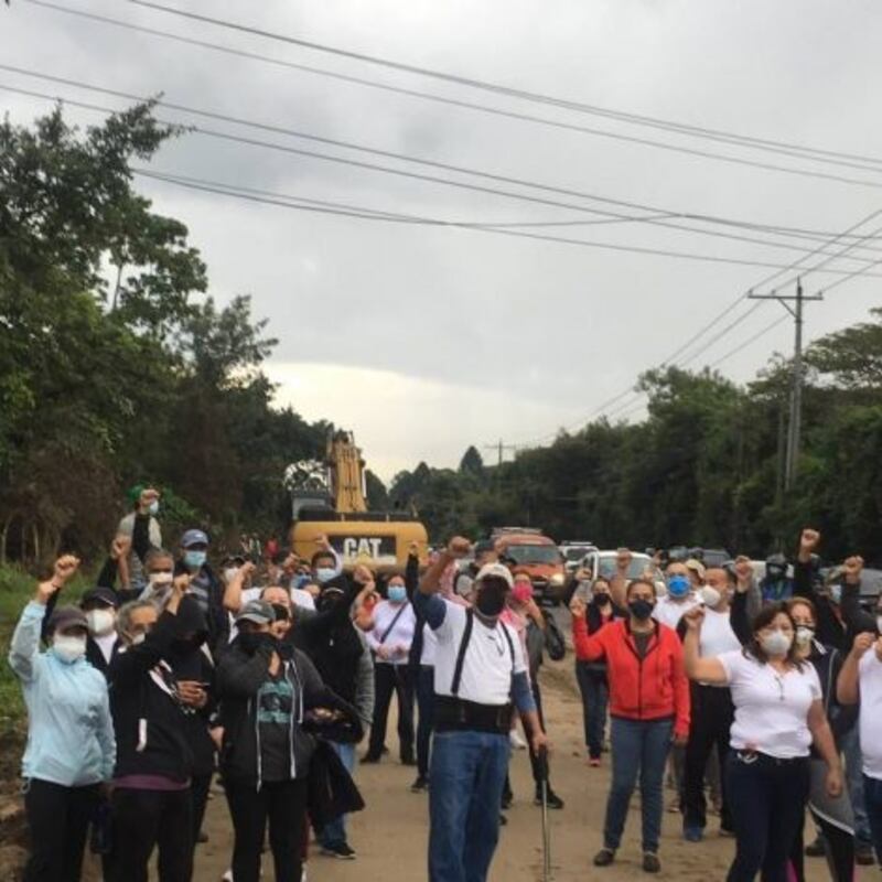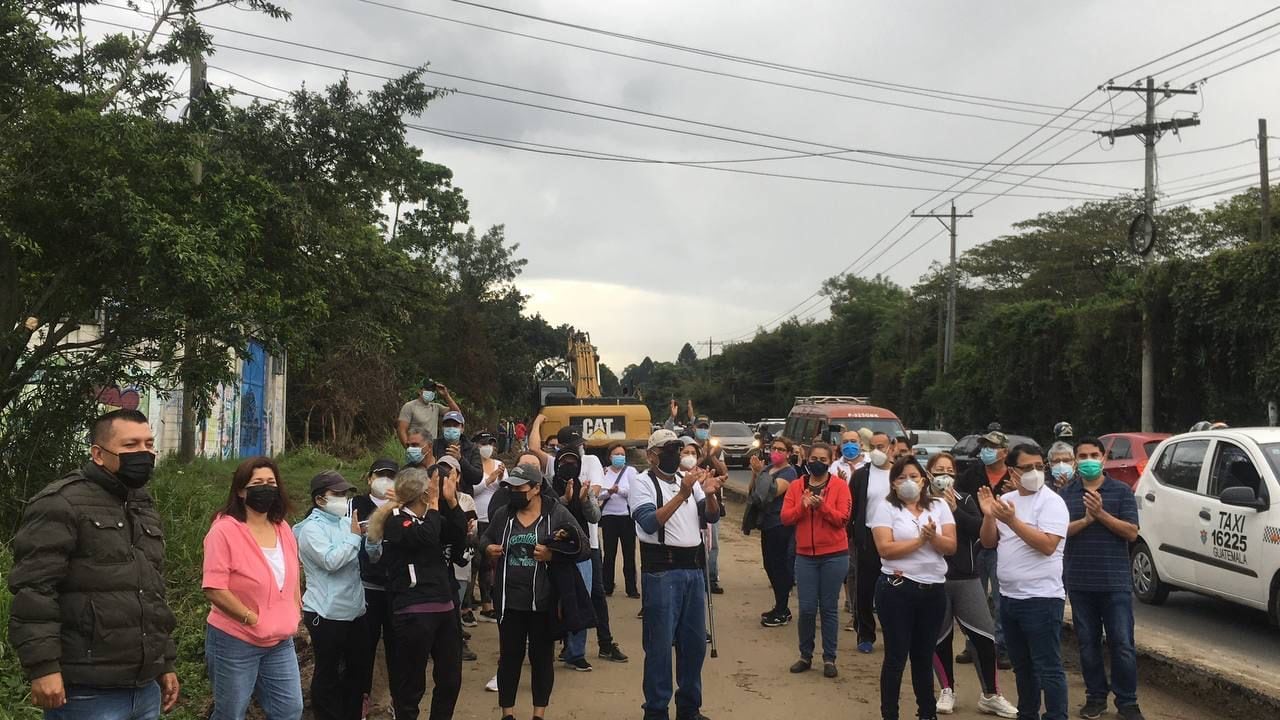 Vecinos residentes del condominio Alamedas de Villa Flores, ubicada en la zona 7 de San Miguel Petapa, protestan de forma pacífica y exigen un diálogo por la construcción de un tramo carretero.
