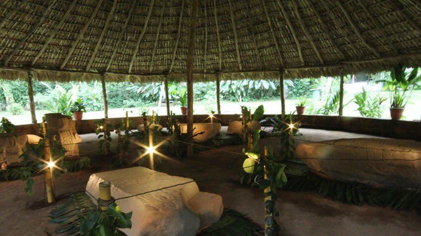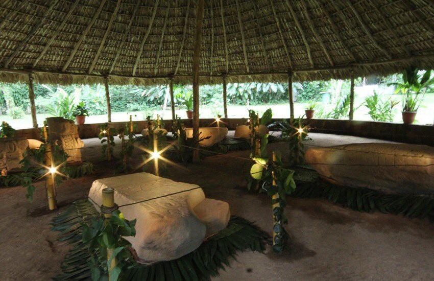Asimismo, se encuentran talladas en roca cabezas humanas de tamaño colosal y animales como tortugas, serpientes y cocodrilos. Estas son manifestaciones culturales precolombinas.