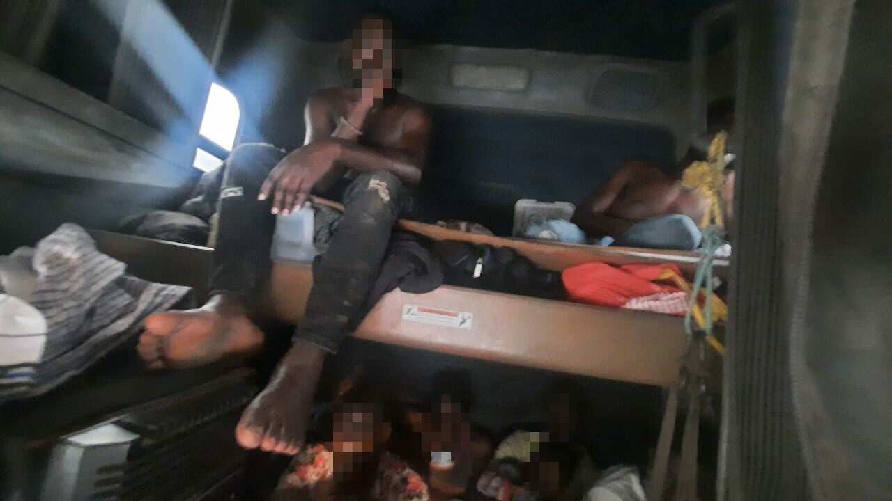 “En la cabina del cabezal con placas C-117 BRC conducido, por Alex Haroldo Vásquez Ortiz, de 42 años, eran transportadas 12 personas provenientes de Haití. En otro segundo cabezal C-952BQH conducido por Basilio García Tajtaj, de 50, fueron localizadas otras 13 personas, entre ellas 4 niños, procedentes de Haití, Brasil y Chile”, dice el reporte de la PNC.
