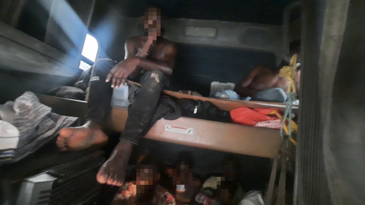 “En la cabina del cabezal con placas C-117 BRC conducido, por Alex Haroldo Vásquez Ortiz, de 42 años, eran transportadas 12 personas provenientes de Haití. En otro segundo cabezal C-952BQH conducido por Basilio García Tajtaj, de 50, fueron localizadas otras 13 personas, entre ellas 4 niños, procedentes de Haití, Brasil y Chile”, dice el reporte de la PNC.