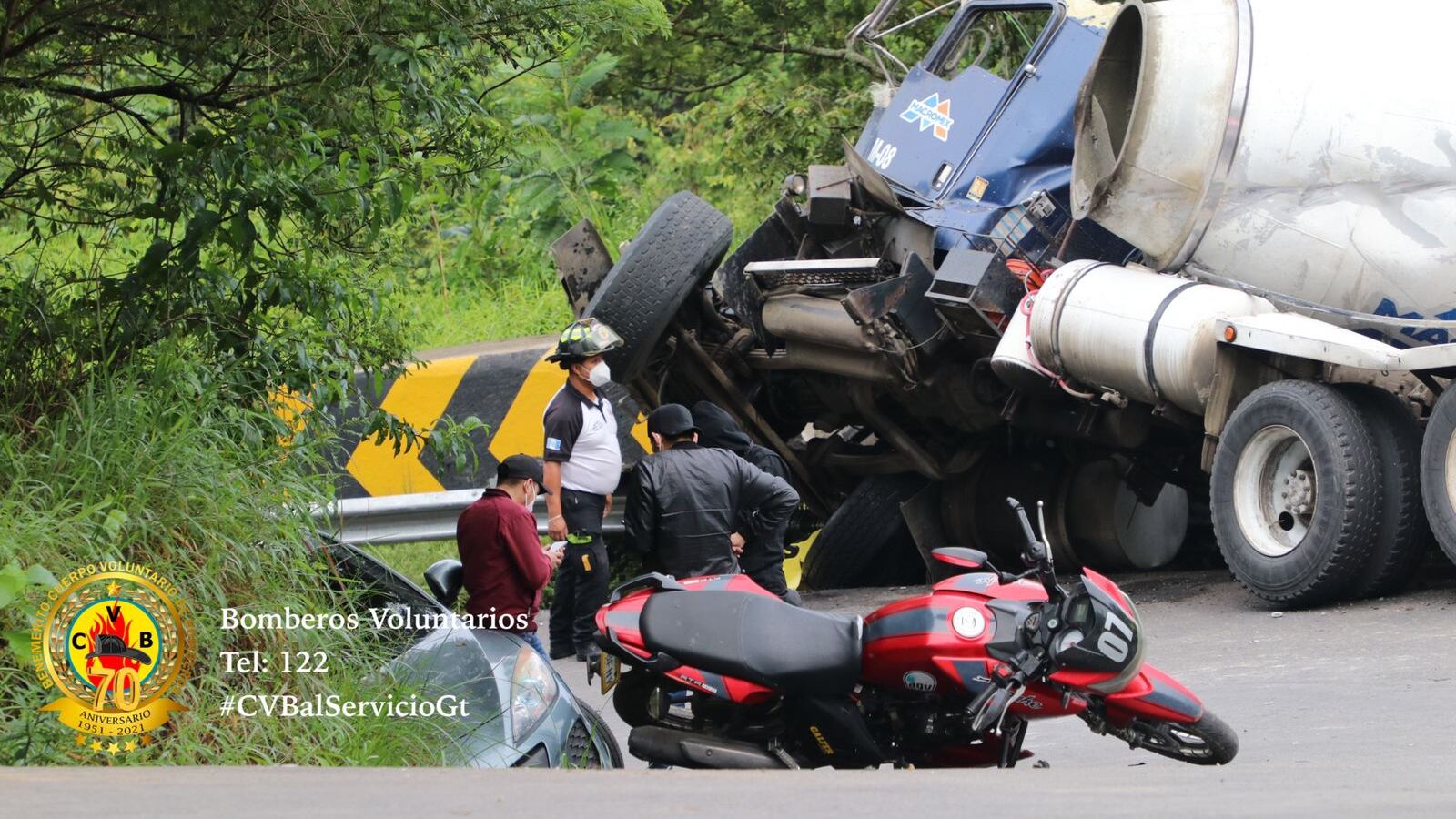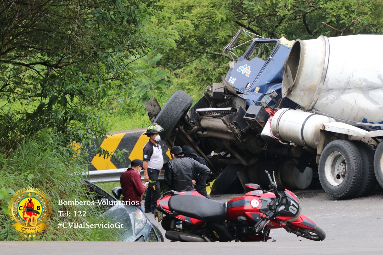 Varias unidades de los bomberos Voluntarios fueron trasladadas al lugar tras recibir la alerta acerca de que un camión cargado con cemento había volcado.