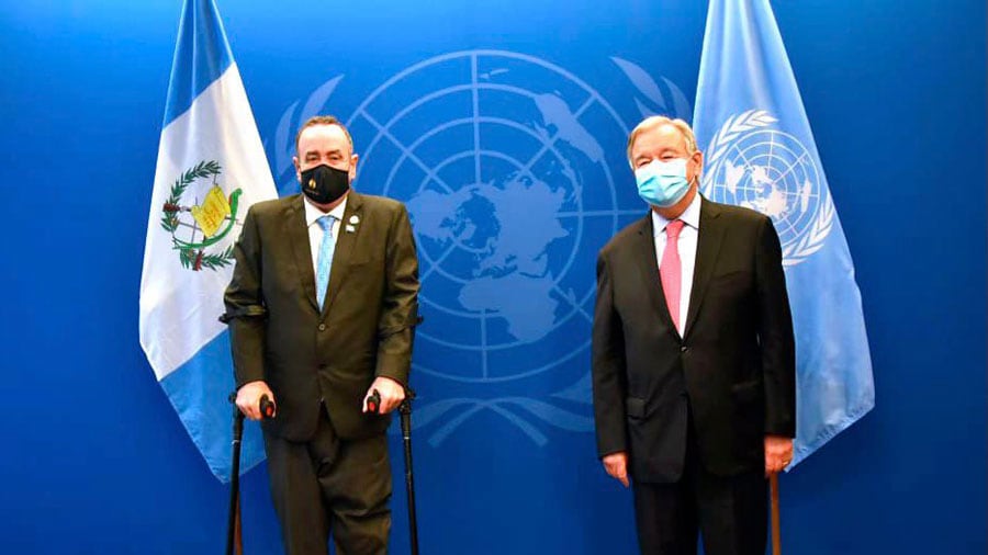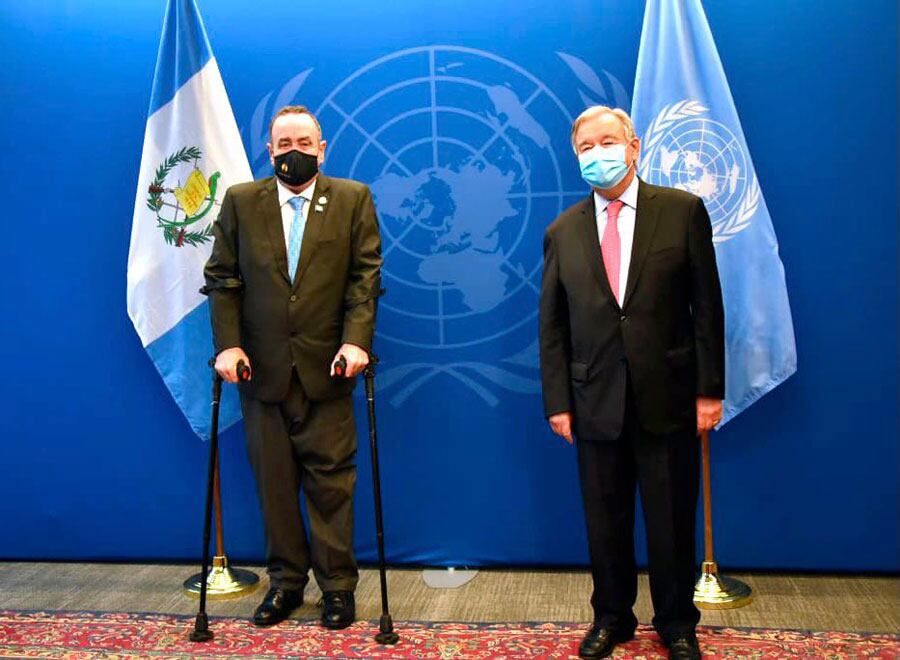 El presidente de la República, Alejandro Giammattei Falla, sostuvo una reunión este martes, 21 de septiembre, con el secretario general de las Naciones Unidas (ONU), Antonio Guterres, con quien conversó acerca de la vulnerabilidad de la región centroamericana al cambio climático.