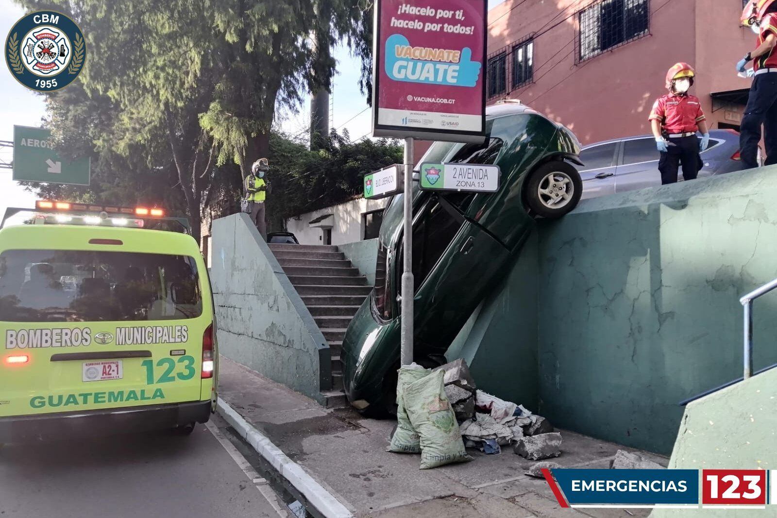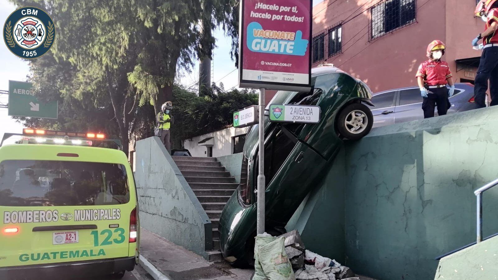 Bomberos Municipales fueron alertados luego de que el piloto de un vehículo tipo sedán cayera de una acera de unos dos metros.