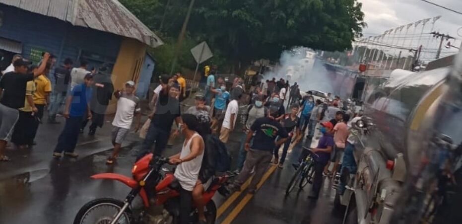 El pasado lunes, un grupo de vecinos comenzó a manifestarse por falta del servicio de energía eléctrica. La Policía Nacional Civil (PNC) intervino luego de que se interrumpiera el paso en la carretera.