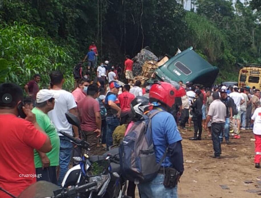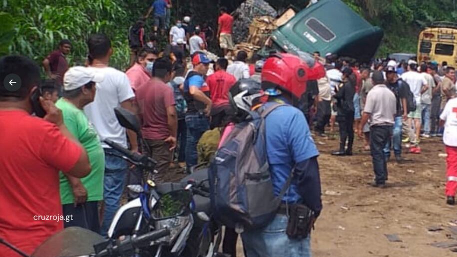 El fuerte accidente es protagonizado por un tráiler, un autobús, un tuctuc y dos vehículos liviano, según la Cruz Roja Guatemalteca.