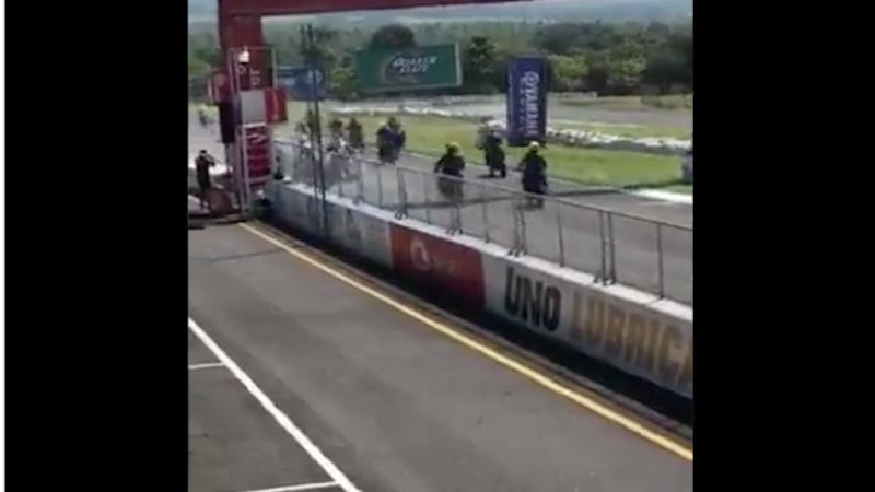 Una situación similar ocurrió este domingo en la carrera de Moto3, en España, la cual quedó suspendida luego de que un corredor provocara un múltiple accidente que de fortuna no dejó ninguna persona fallecida.