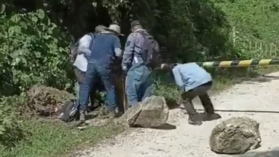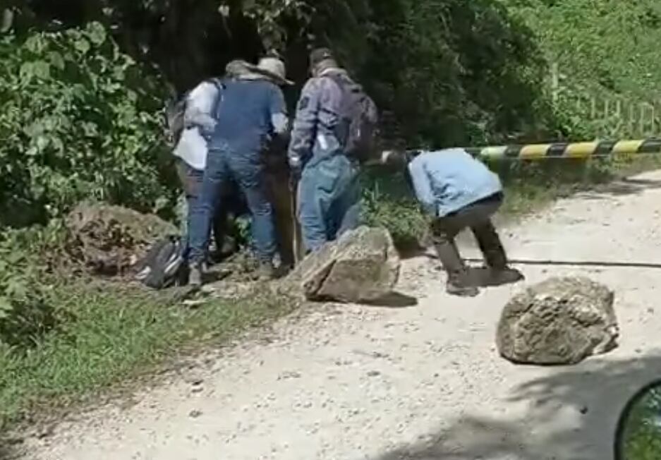 En el video se observa el vehículo en el que se transportaban con desperfectos mecánicos, así como la colocación de una talanquera y rocas de gran tamaño que les impedía el paso.