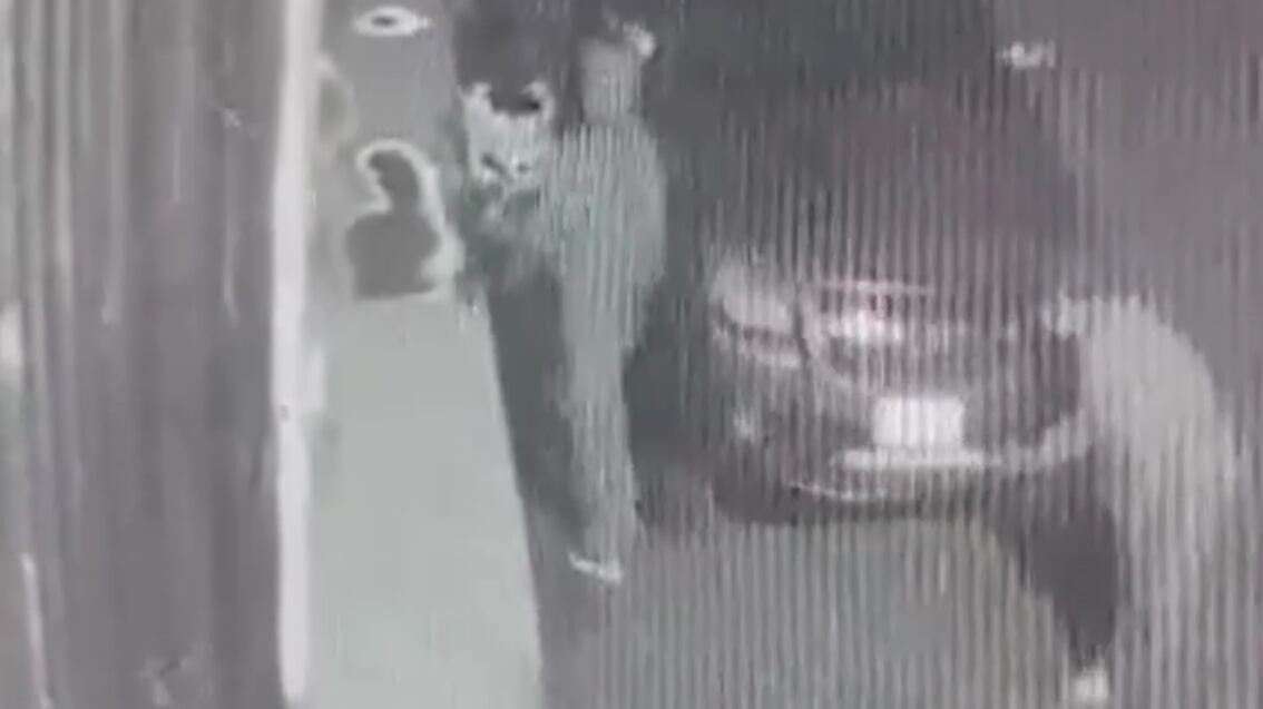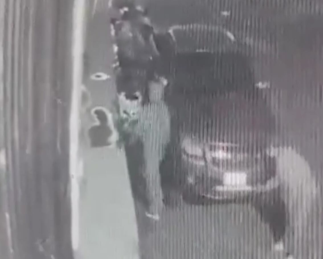 Los dos supuestos ladrones se acercan al vehículo, uno de ellos se encarga de vigilar el área y evitar que sean vistos. Sin embargo, no se percatan que frente de ellos está instalada una cámara de vigilancia.