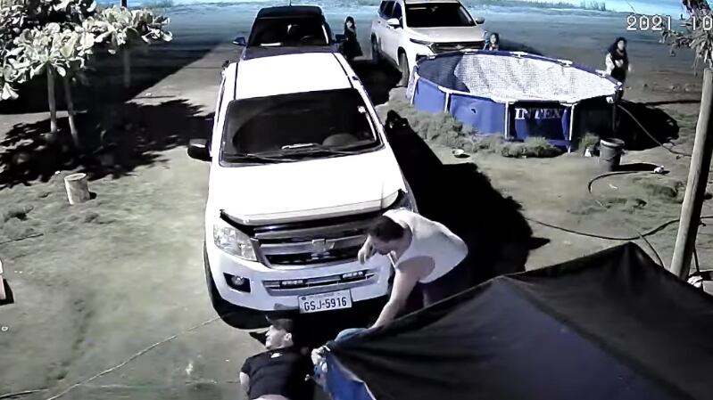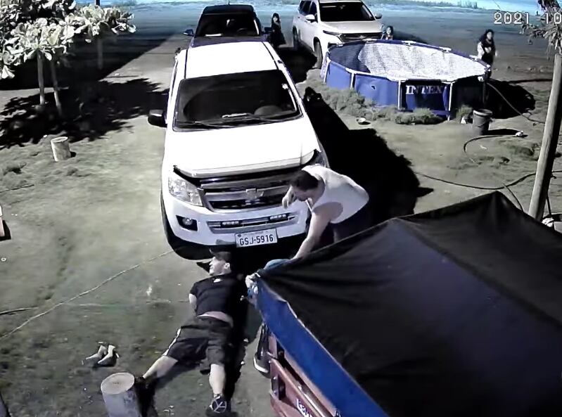 En el video de seguridad se observa que llegó un sujeto con una chumpa de color negro que disparó en varias ocasiones contra Macias Saltos y otros acompañantes, y luego huyó en una moto negra con un cómplice que lo esperaba en una zona cercana.quien fue llevado