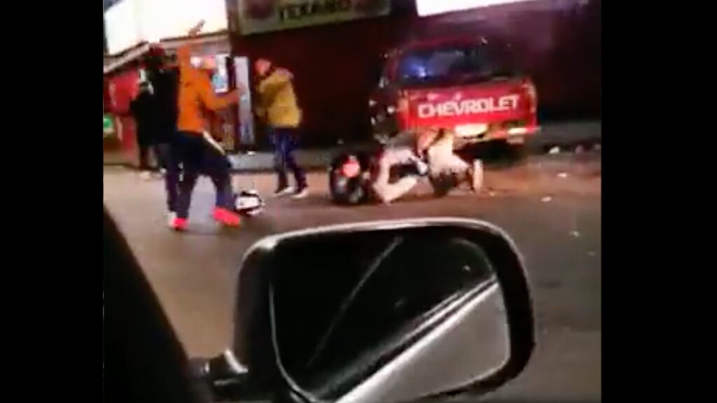 Tras entablar una fuerte discusión, los sujetos sacaron armas blancas desde el vehículo, con las que comenzaron el ataque, que quedó registrado en las imágenes difundidas en redes sociales, se reveló.