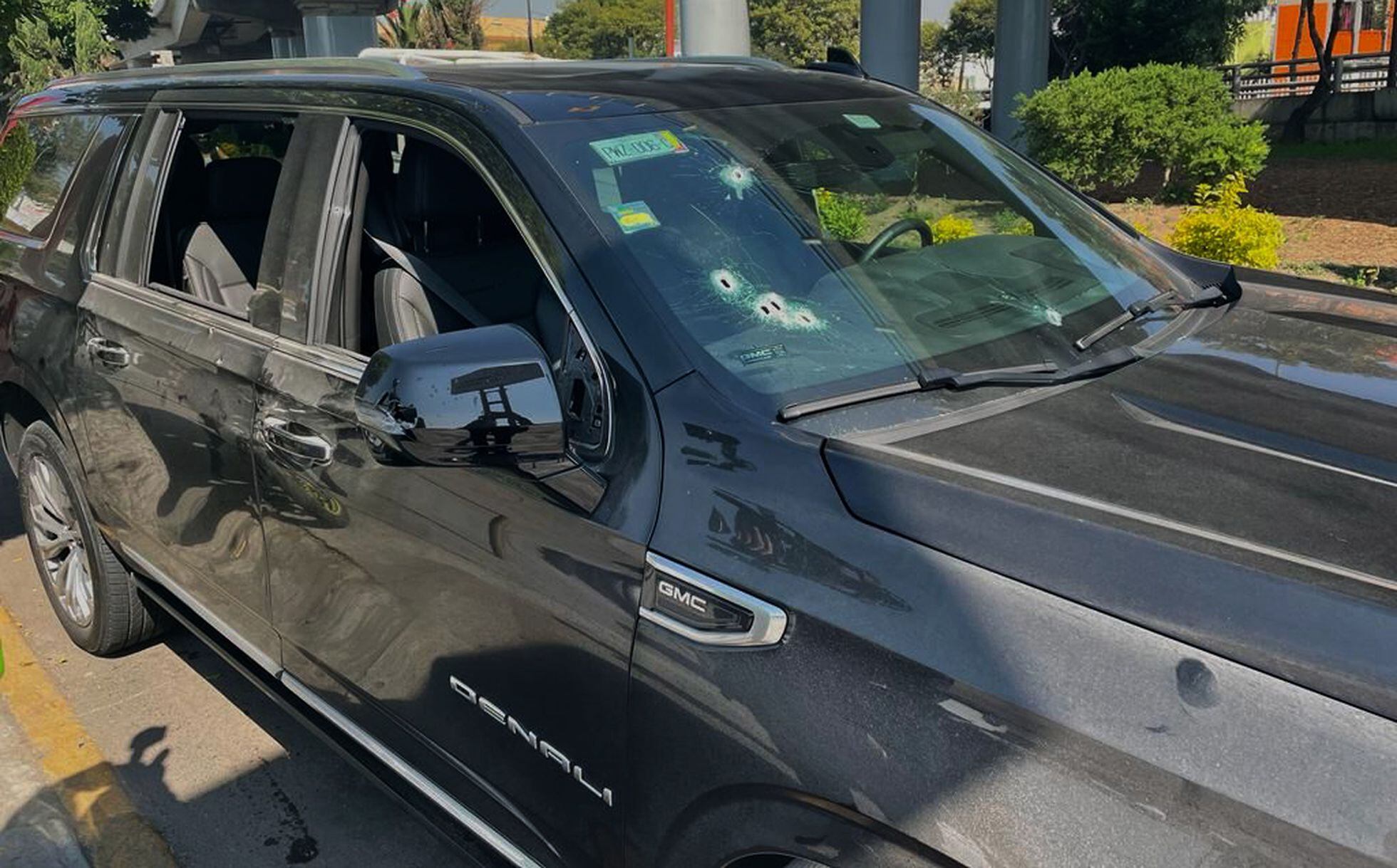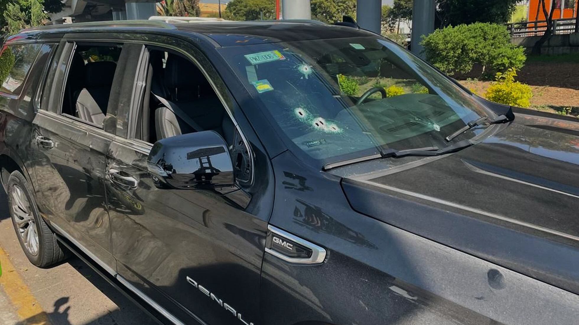 Autoridades en la terminal aérea atendieron a un hombre de 53 años de edad con heridas en una pierna y a otro más, el conductor de la camioneta, con un impacto de bala en una mano.