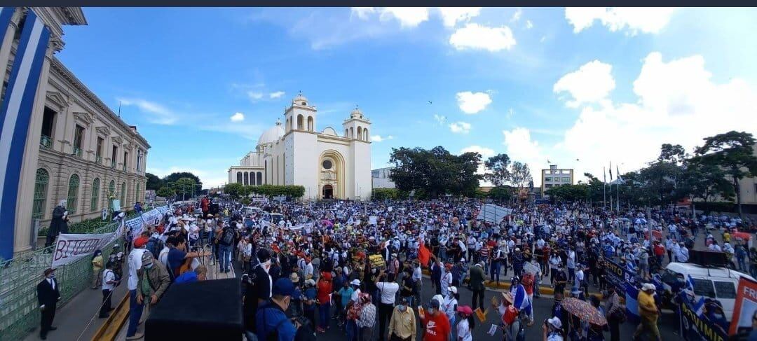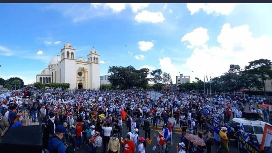 Miles de salvadoreños marcharon este domingo en San Salvador en contra de políticas del gobierno del presidente Nayib Bukele, entre ellas dar curso legal al bitcóin en el país.