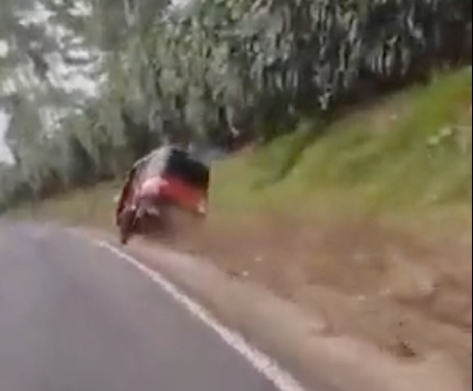 En redes sociales fue publicado el video que fue captado por un motorista que se conducía atrás del mototaxi.