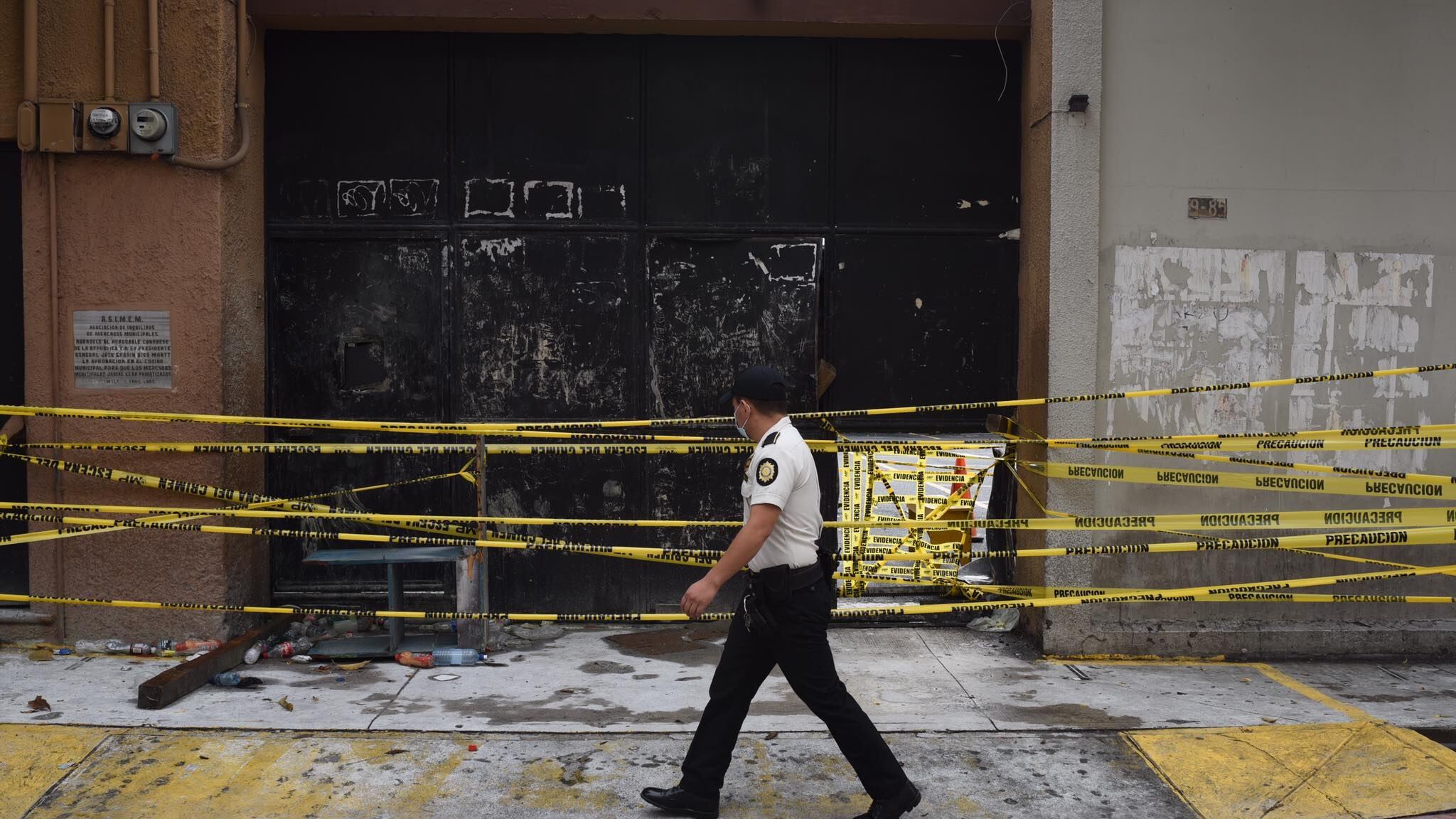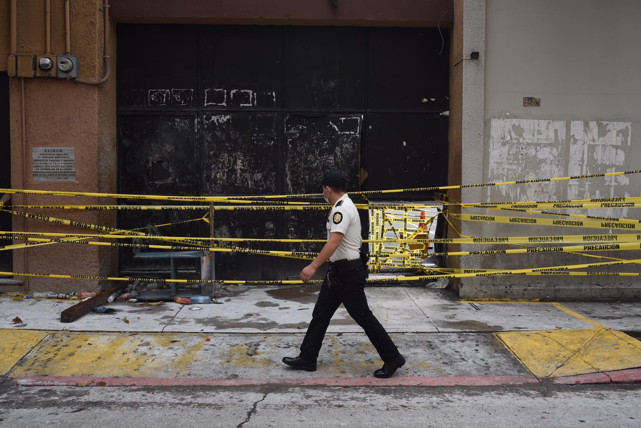 Los policías mantienen acordonada el área por los trabajos de investigación tras la jornada violenta provocada por manifestantes identificados como veteranos militares.
