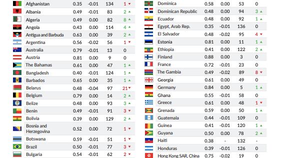También México tuvo un retroceso en la posición, al bajar una posición y ubicarse en el puesto 113.
