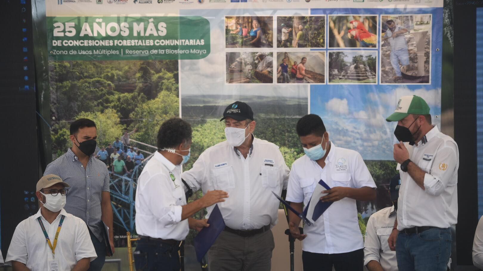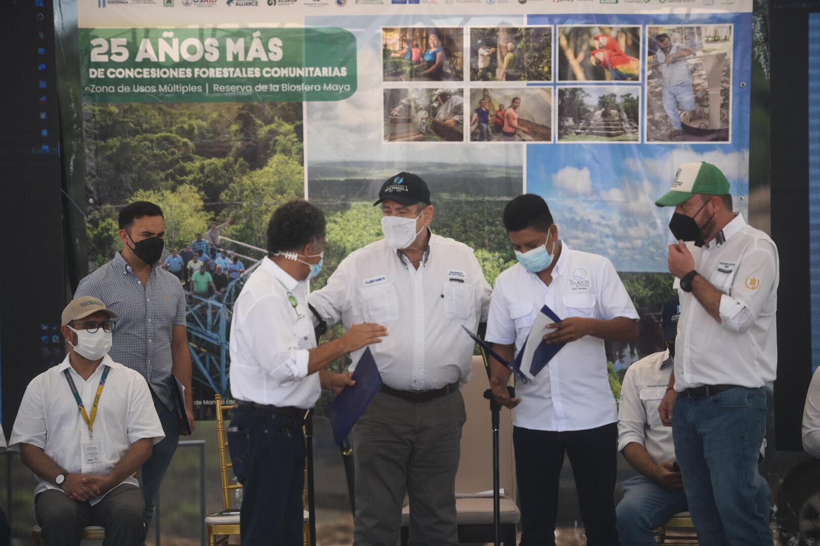 El presidente Alejandro Giammattei hizo entrega de los contratos de prórroga de concesiones forestales y resolución de adjudicación de nuevas concesiones para el aprovechamiento y manejo integral de los recursos naturales.