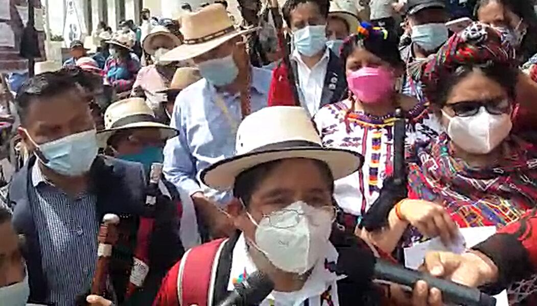 Los representantes de la alcaldía de Palín, Escuintla; autoridades de Sololá, de San Juan Comalapa, de San Juan Sacatepéquez, del Parlamento Xinca, del pueblo Chortí, y de los 48 Cantones de Totonicapán, se hicieron presentes en una marcha en el Centro Histórico.