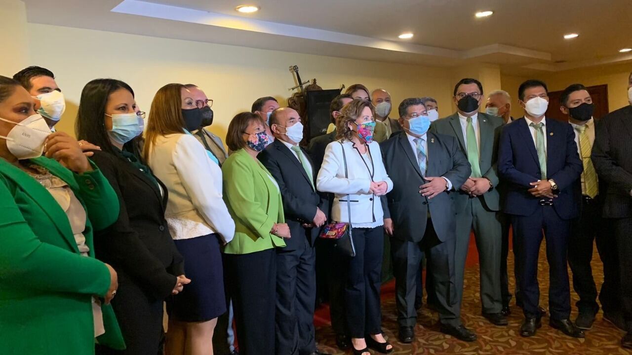 Sandra Torres, secretaria general del partido Unidad Nacional de la Esperanza (UNE), reapareció este martes, 26 de octubre, junto a los diputados de esa bancada.