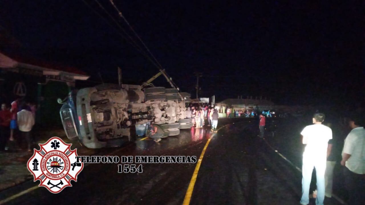 Una persona murió este miércoles por un accidente de tránsito en el que un camión cisterna volcó en carretera, en un sector de Coatepeque, Quetzaltenango, informaron socorristas.